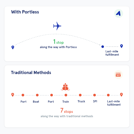 Yes. Portless supports brands that want direct fulfillment for international orders while keeping an existing domestic setup for US fulfillment. It's a common entry point that adds a new channel without requiring a full supply chain rebuild.